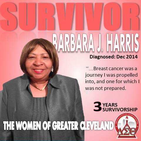 “Breast cancer was a journey I was propelled into, and one for which I was not prepared. I really appreciated the support from sorors who called and offered encouragement and support. Through the Grace of God, I made it through the surgery, chemotherapy, radiation, and all those side effects. I will always be grateful to all my friends and sorors who supported me…My advice to others starting on this journey is that cancer is a journey, and not a sentence! Seek and accept support from others. You do not have to go it alone.”