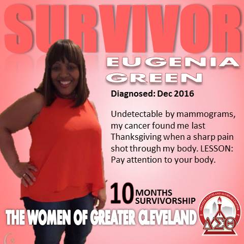 “My message to my Sorors is to know your family history, take all health tests as soon as you are able to do so, and to be assertive with your physicians. It is your health and you have to make sure that they pay attention and give you all the care needed…Remember we serve a healing God. You are a survivor the first day you are diagnosed and have a positive attitude about God's healing powers.”